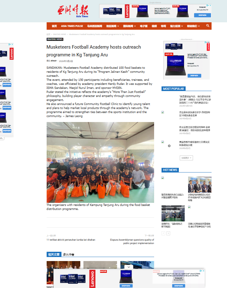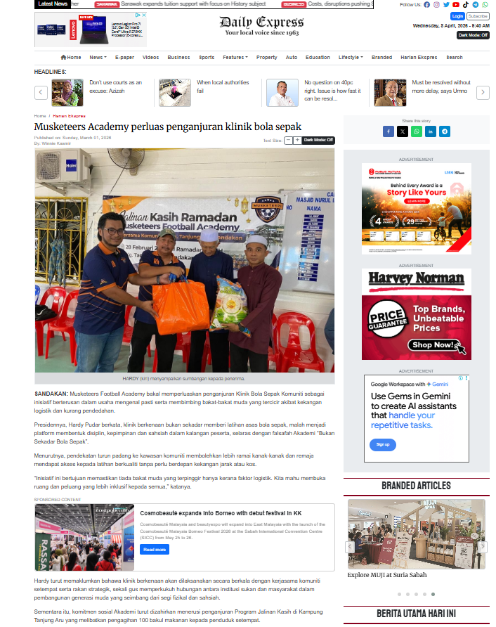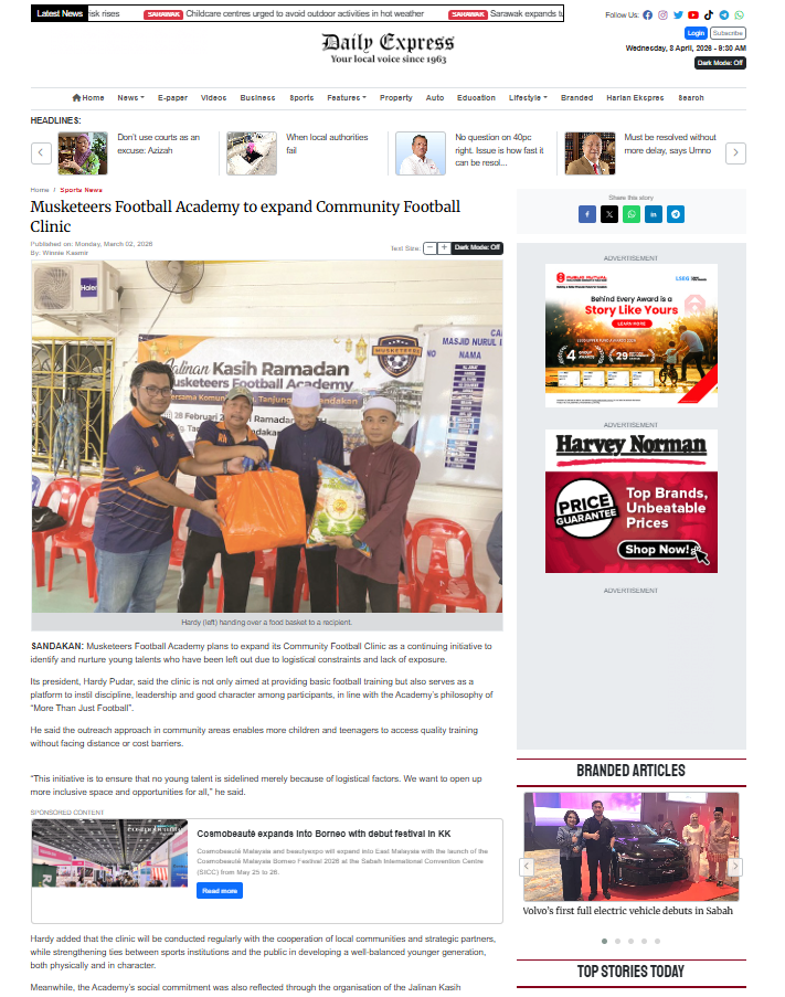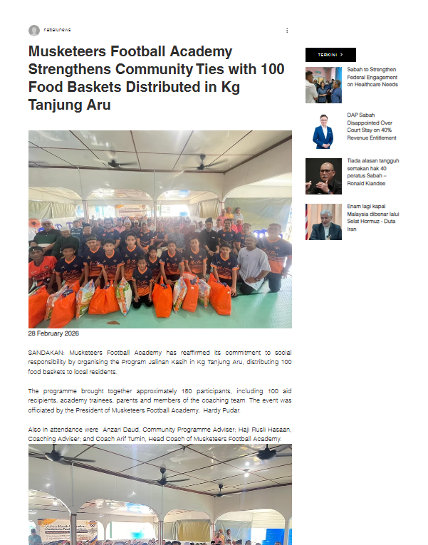 Musketeers Football Academy Strengthens Community Ties with 100 Food Baskets Distributed in Kg Tanjung Aru | Daily Express